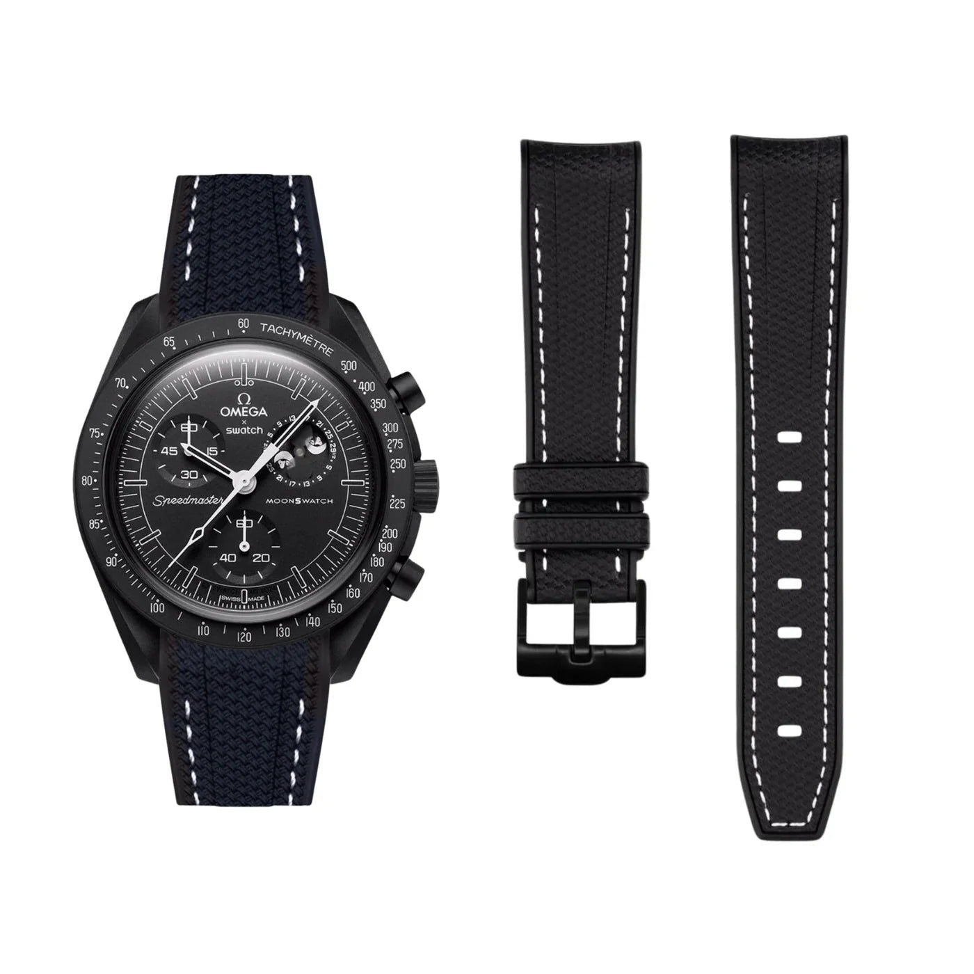 Rubber Strap - For MoonSwatch Mission To EarthPhase - Black w/Black - Helvetus
