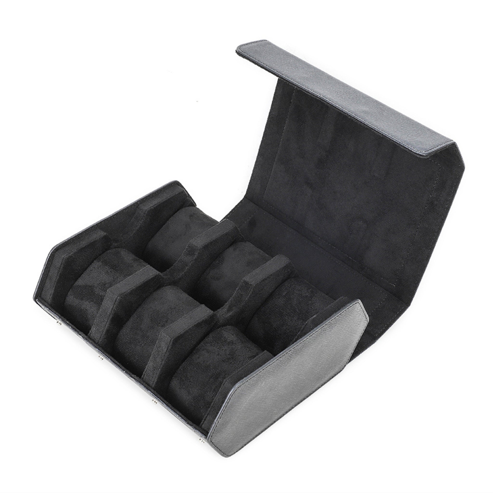 - 6-Slot Black Leather Watch Box – Ideal for collectors looking for secure and elegant organization of their growing collection.